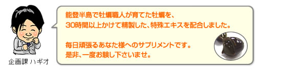 やはり大切なのが、牡蠣の力をさらに強くする事。確かに毎日、牡蠣を食べる事は難しいですが、それでも自然界に存在するもの以上に力を強くする事が私たちが考えている事。だって私たちが目指すのは、本当におツカレの男性をお助けする事。だから抽出方法にも妥協は許しません。