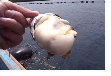 数ある牡蠣を見てきましたが、その中でも、これは練乳のように、とっても濃厚な牡蠣です。なんでも地元では「ミルク牡蠣」と呼ばれているほど、その濃厚さは信じられないものでした。そして、これほど濃厚になる理由は、2つありました。