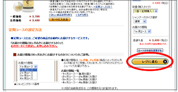 6.定期設定がお済みになりましたら、「レジへ進む」ボタンを押して下さい。 | |