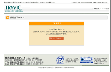10.正常にご注文を受け付けさせて 頂きましたら、このページが表示されます。あわせて、ご注文 内容確認メールをお送りさせて頂いておりますのでご確認 下さいませ。 | |