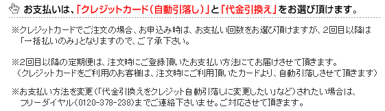 | ※定期コースの変更や解約は、お電話にて承ります。 (お届け予定日の10日前まではいつでも可能です。) |