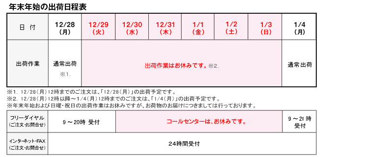 年末年始の配送についてのご案内