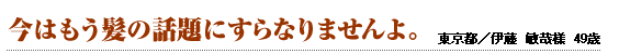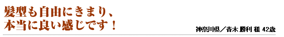 1本1本も凄く満足いくようになって、これさえ続けていれば、一生髪に悩まないで済みそう です。
