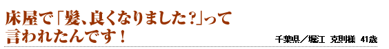 あの時洋服屋で試着をしている時、自分の頭を見てびっくりしたんです! なぜなら、照明がちょうど頭を照らしていて、その鏡に映った髪が 弱々しい状態であることに気付いたからです。